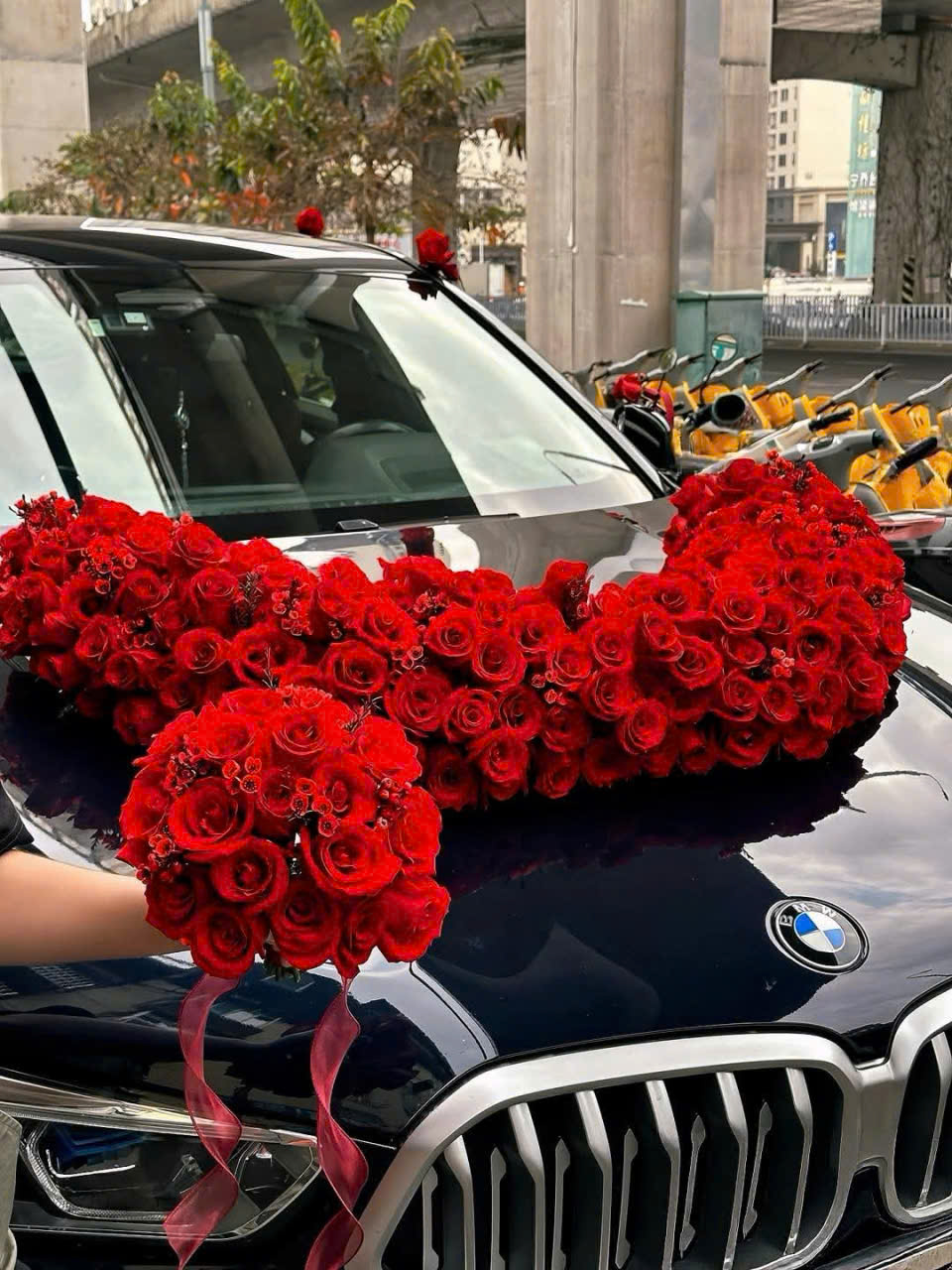Trang trí xe hoa cưới trong ngày, gấp